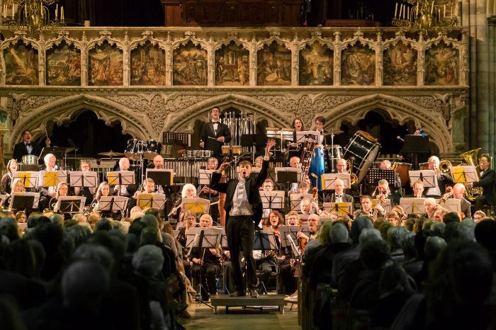 Dr Leo Geyer and orchestra performing the music in concert